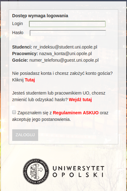 Hasło – hasło tożsame z hasłem do konta poczty e-mail (i systemu USOS).