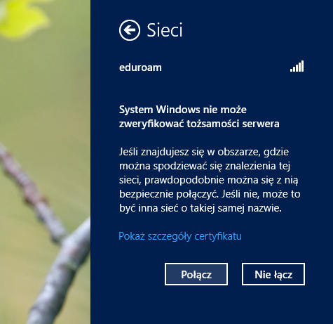 Jak podłączyć system Windows 8 do sieci eduroam?